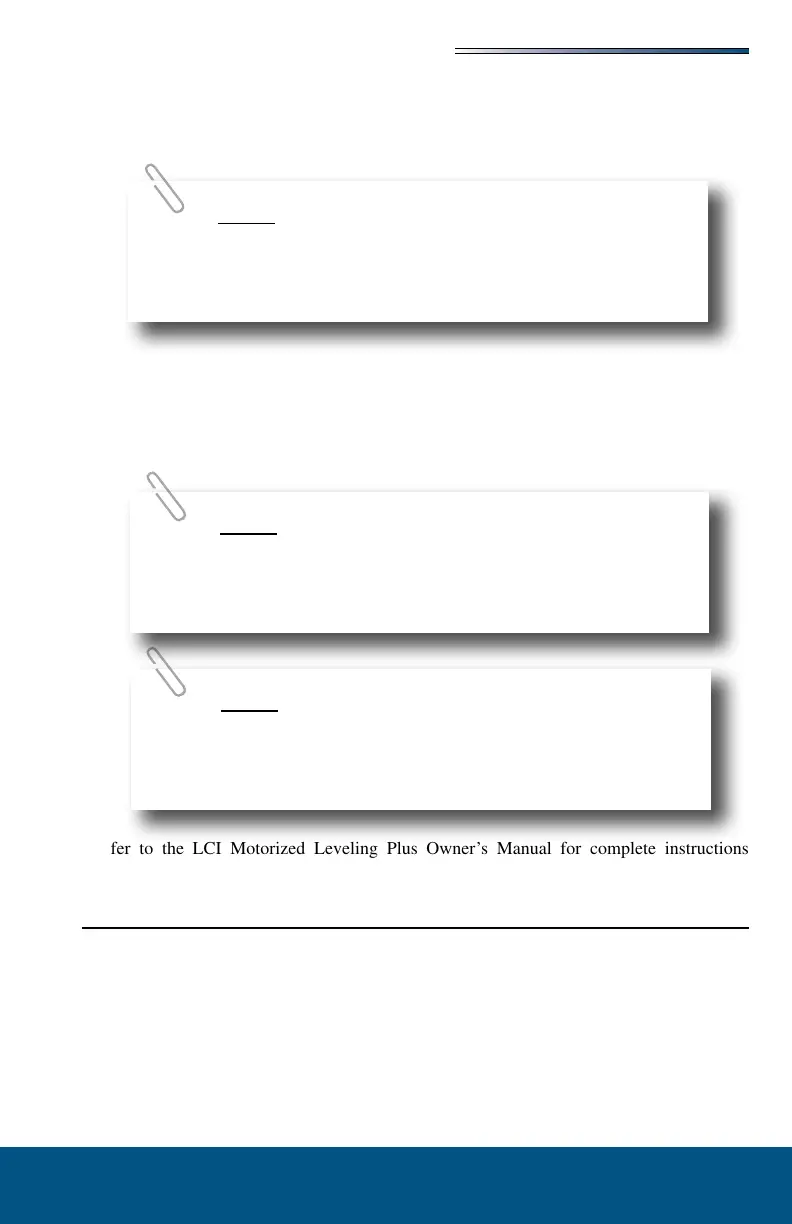 Refer to the LCI Motorized Leveling Plus Owner’s Manual for complete instructions