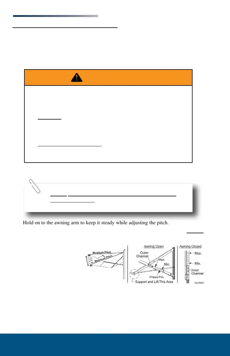1. Hold on to the awning arm to keep it steady while adjusting the pitch.