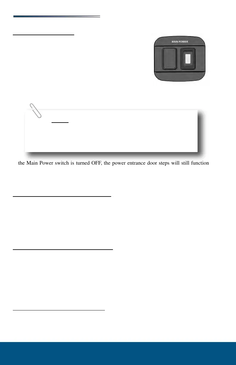 If the Main Power switch is turned OFF, the power entrance door steps will still function