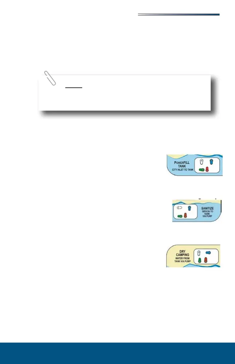 13. Fill the fresh water tank full of clean (potable) water. Use water from either a pressur-