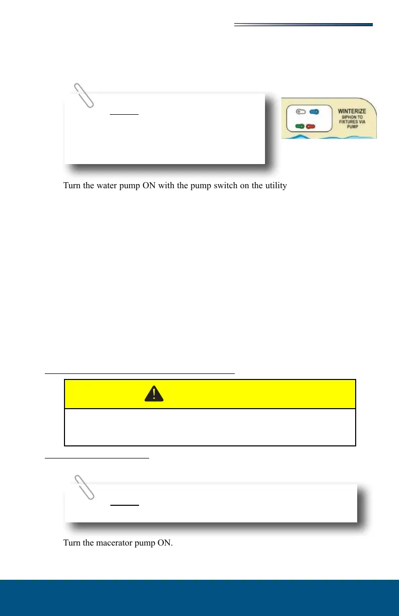 tor system. When winterizing the RV, antifreeze must be added to the macera-