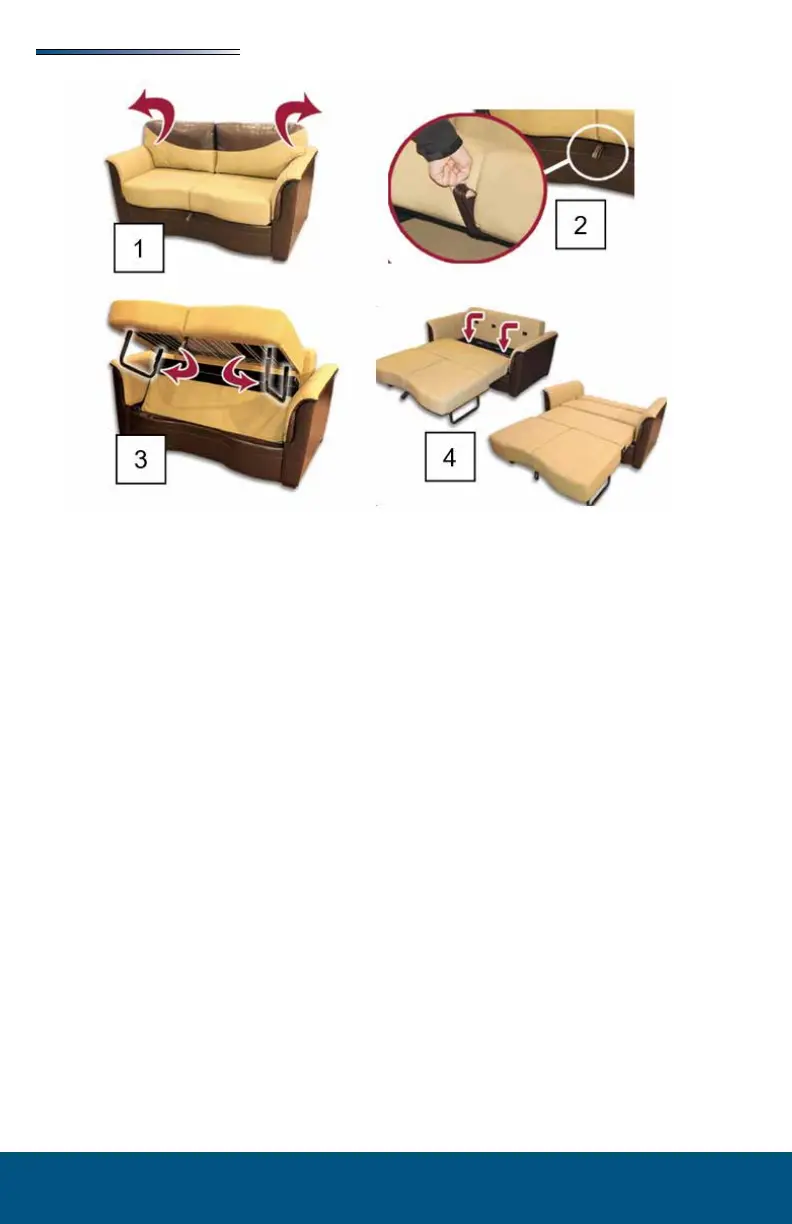 cushions to form a mattress for sleeping. To convert back to a dinette, remove the cushions,