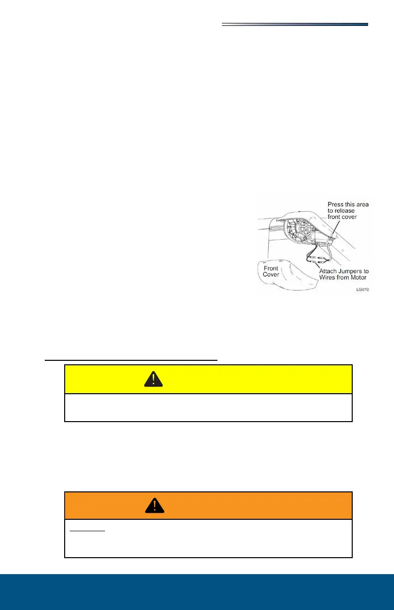 and reattach the cable wires to the motor wires. Be sure to match RED to RED and