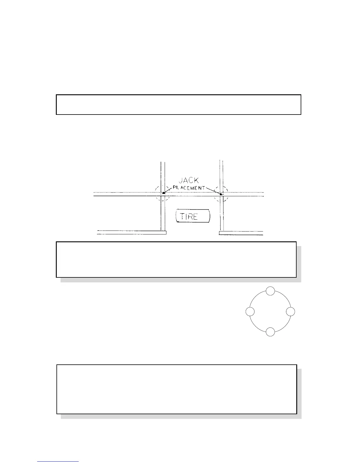 alignment can be altered causing excessive tire wear. DO NOT place jack