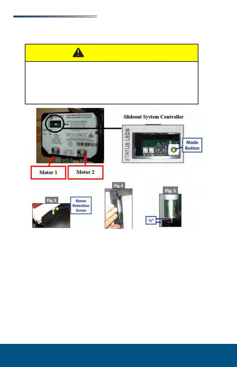 2. Unplug motor 1 and motor 2 connectors at the bottom of the slideout controller. This