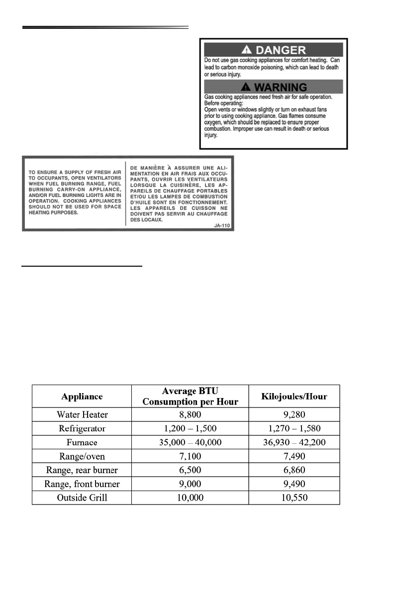 Most RV gas appliances are operated intermittently, and each has a dierent BTU rating.