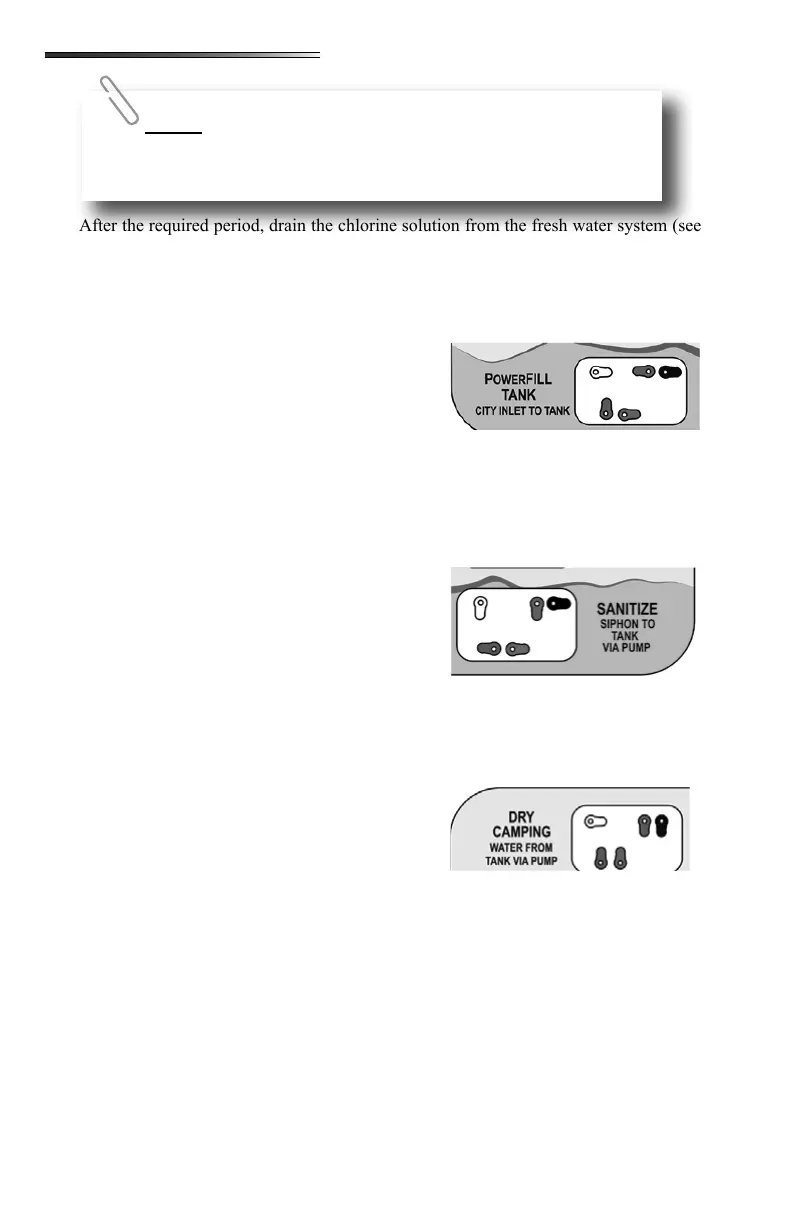 1. Fill the fresh water tank full of clean (potable) water. Use water from either a pressur-