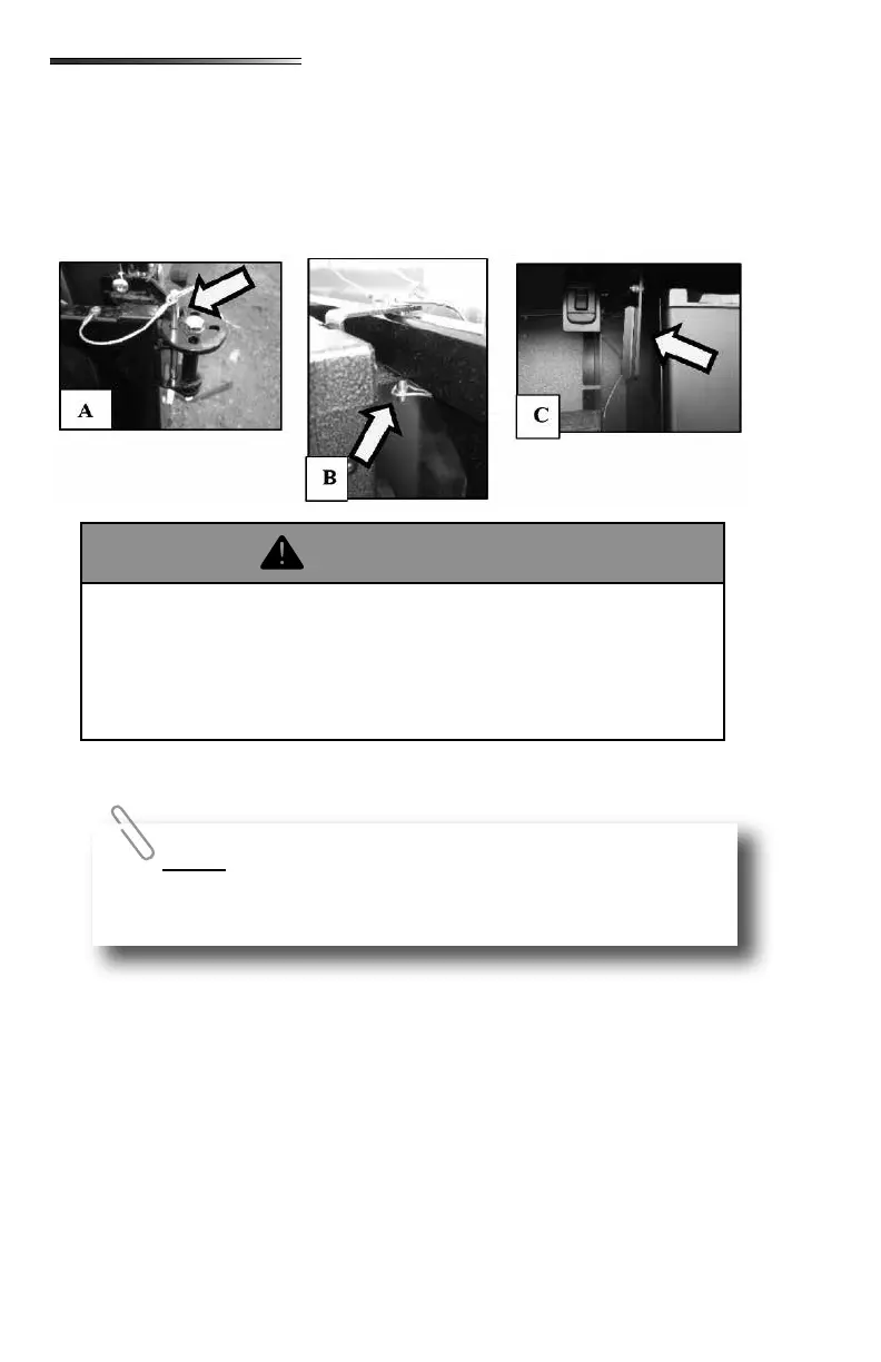 Replace the pin and the keeper cable at the top right rear corner of the enclosure