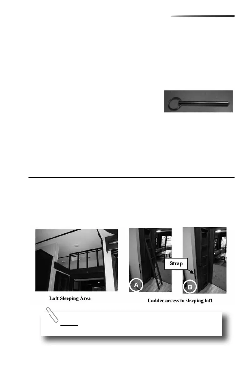 ing up to the loft area. When storing the ladder, make sure to buckle the security strap which