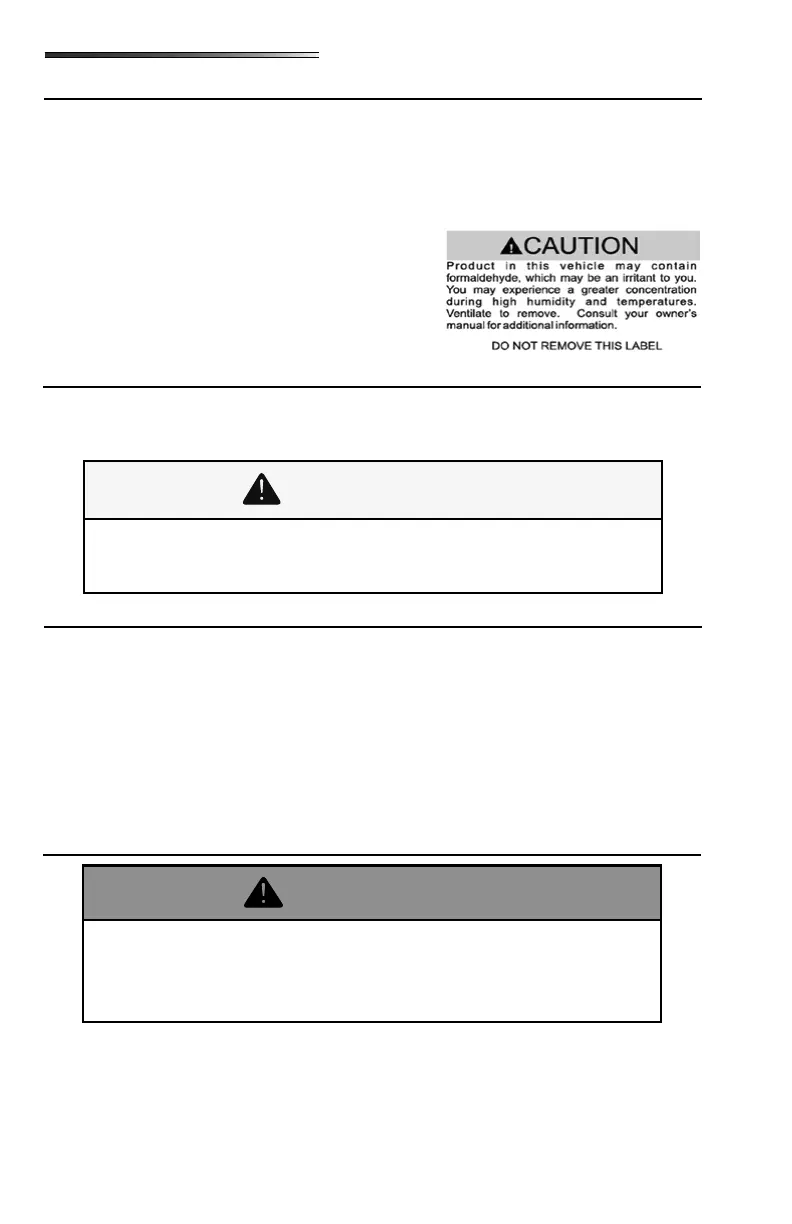 Some components in the recreation vehicle contain formaldehyde-based adhesives that may