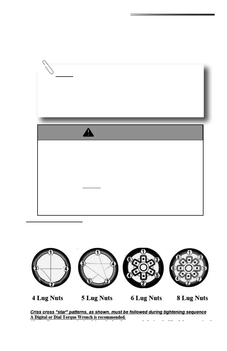 loosen during travel. Wheel lug nuts must be applied and maintained at