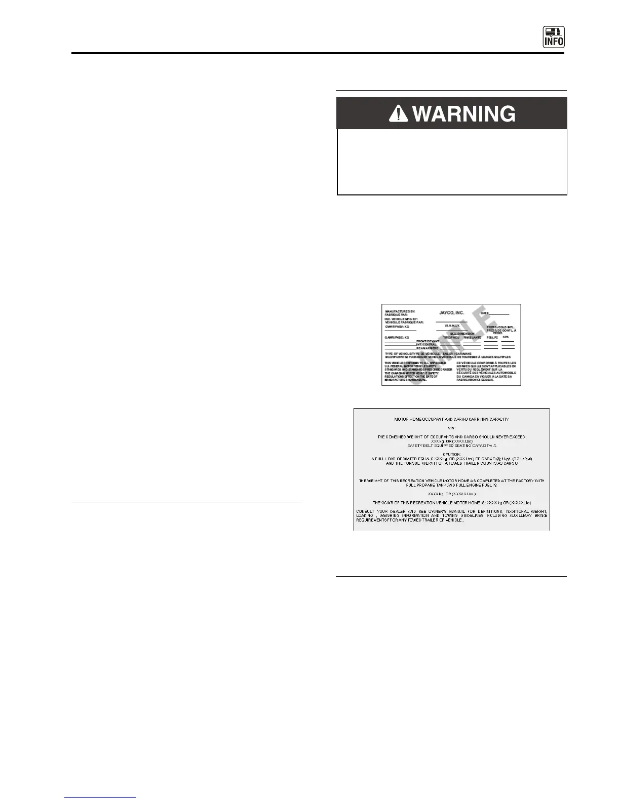 operating your RV. If any decal, data or