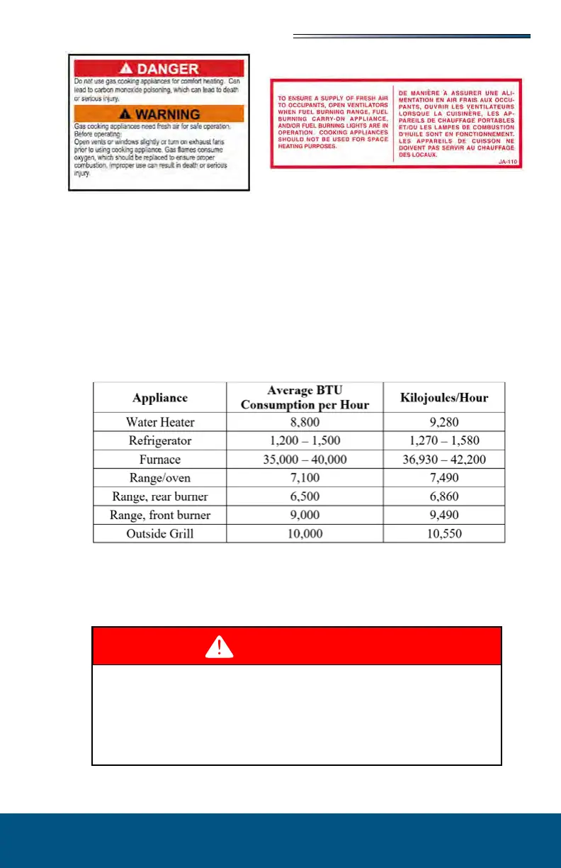 Most RV gas appliances are operated intermittently, and each has a dierent BTU rating.