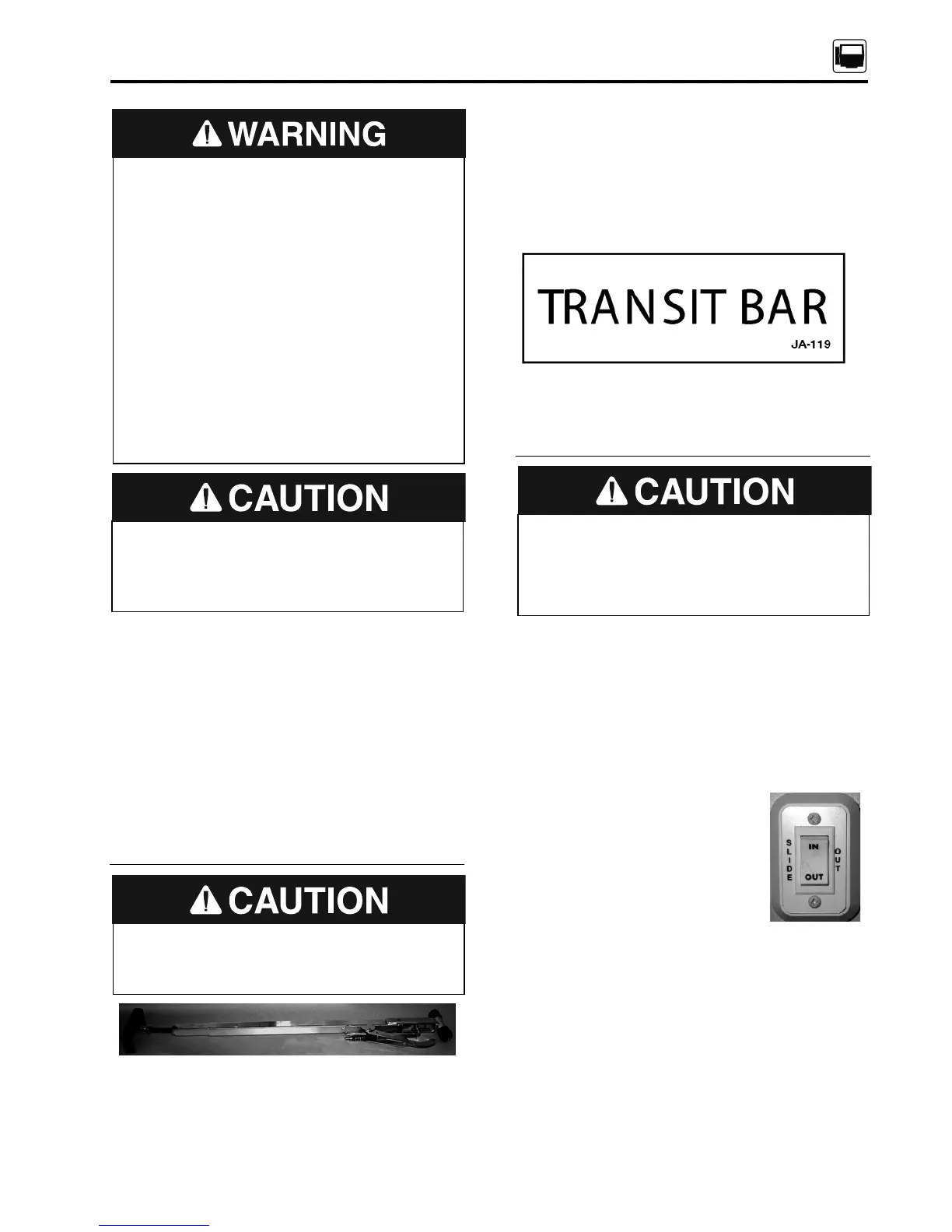 TRANSIT BARS (IF SO EQUIPPED)