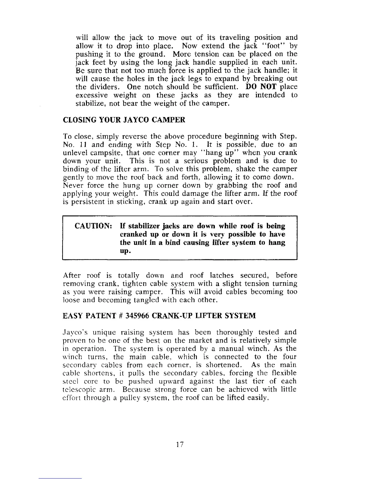 as you were raising camper. This will avoid cables becoming too