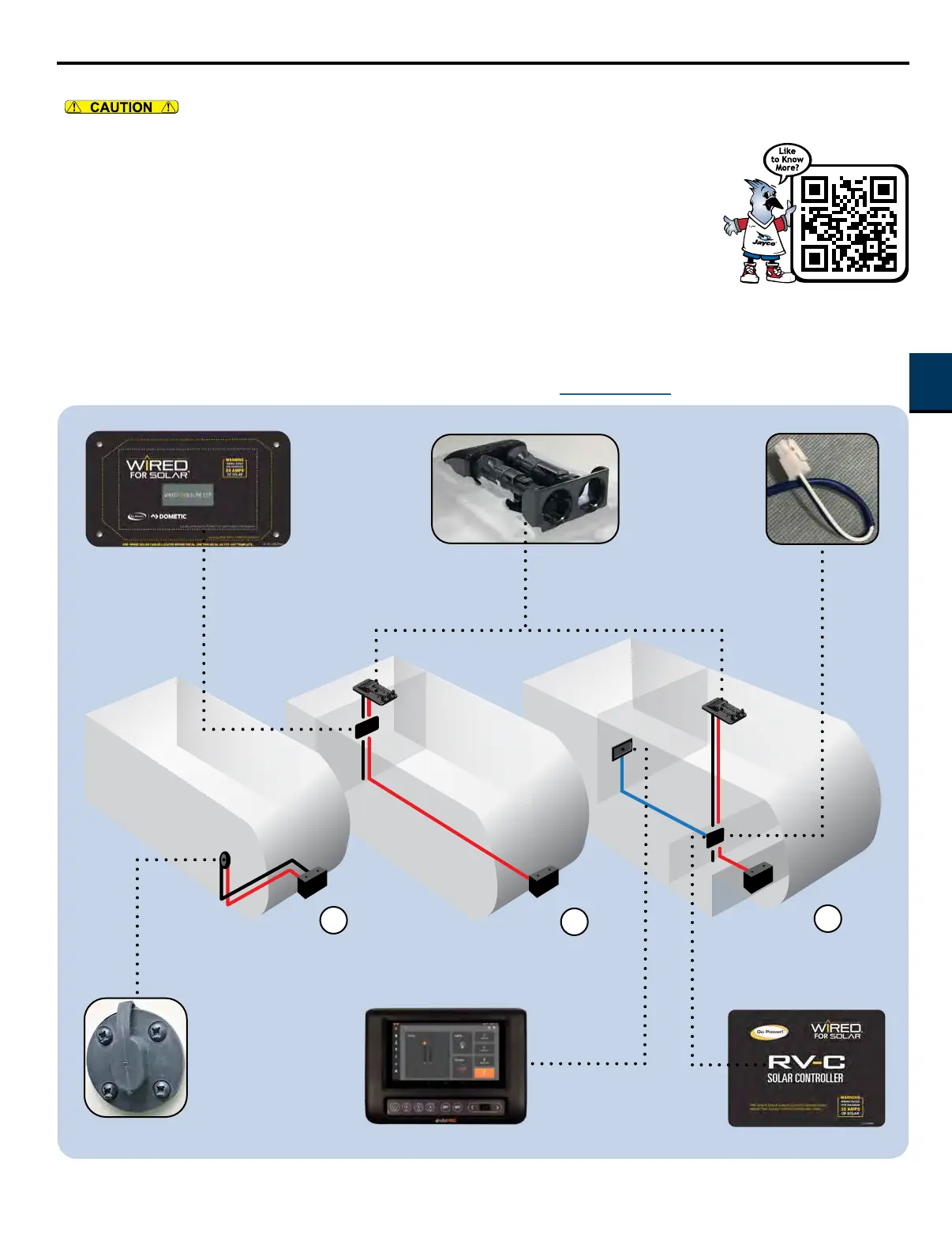 3. A roof mounted port for a solar panel connection, and wiring to a location in the front basement compartment where a solar controller may