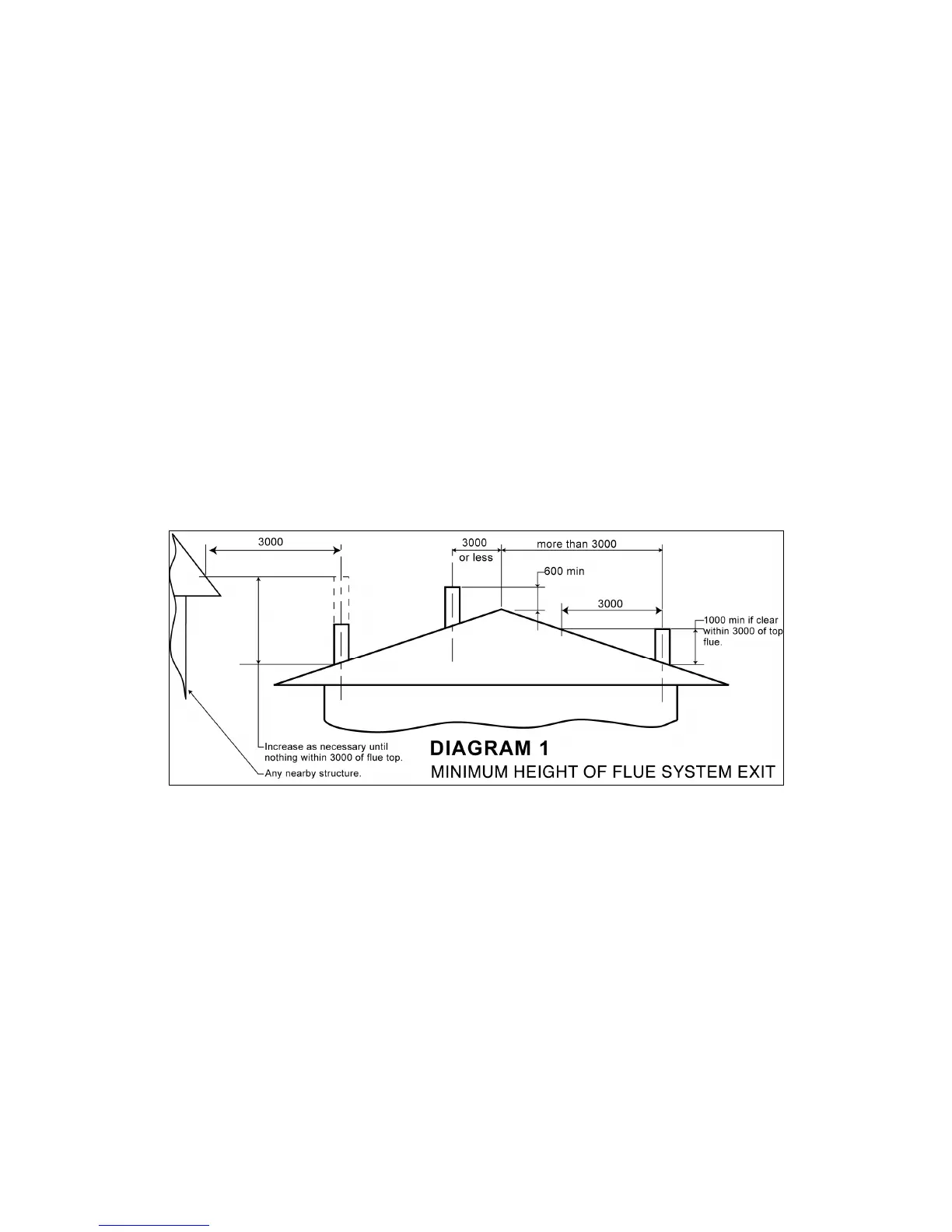 • Flue exiting more than 3 metres from the ridgeline must not terminate less