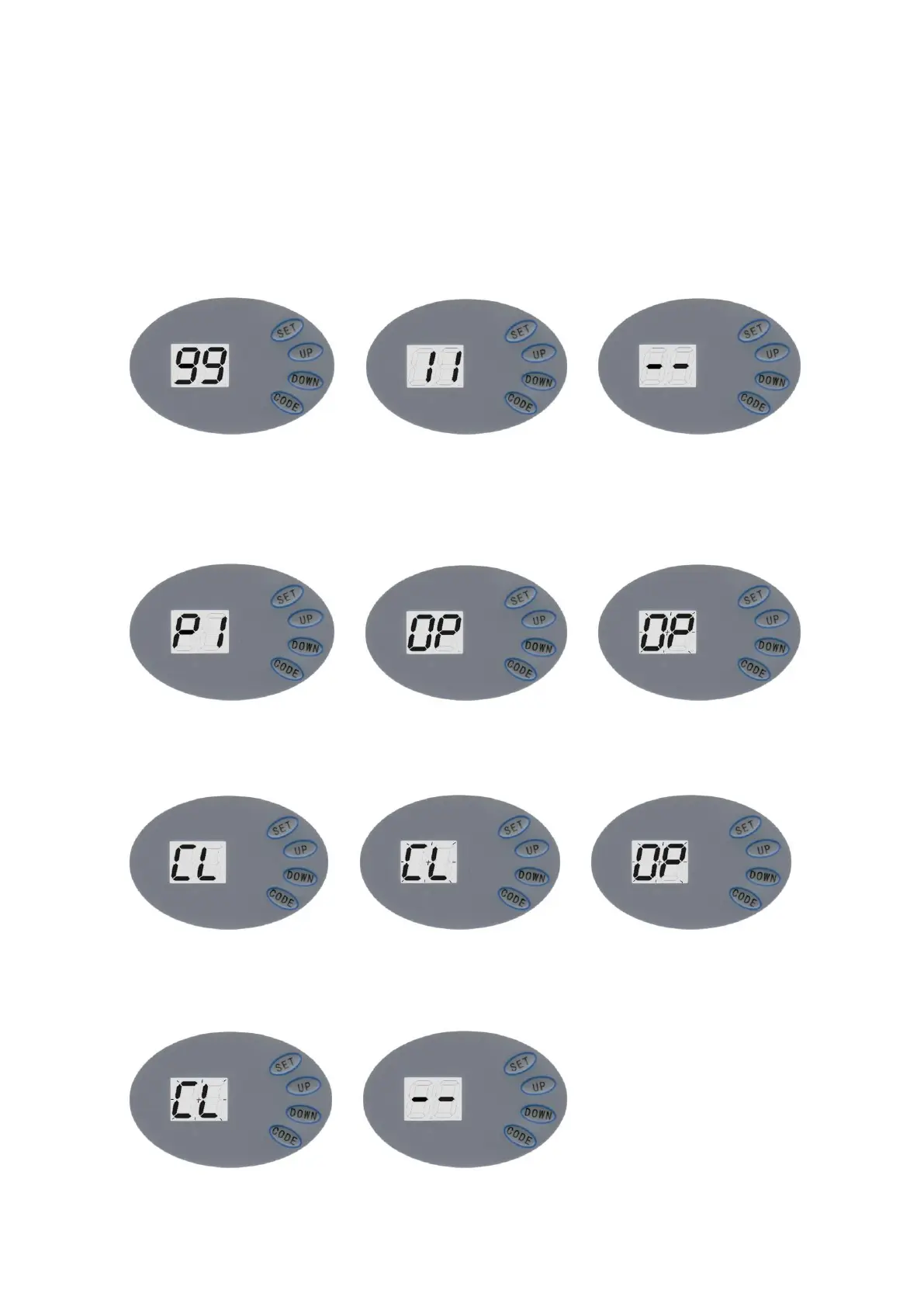 It displays “CL”, then press DOWN, it displays “CL”. When the door has reached the closed