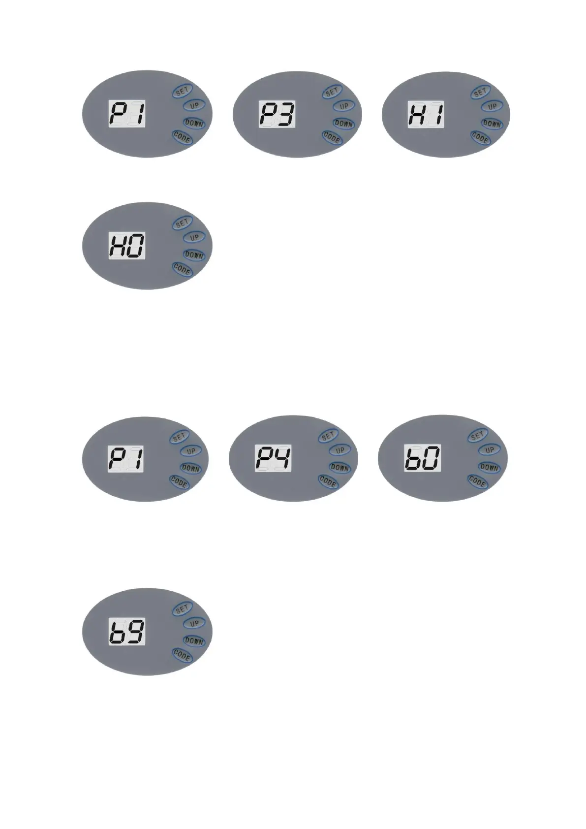 Press and hold SET, it displays “P1”, press UP twice, it displays “P3”. Press SET to show current