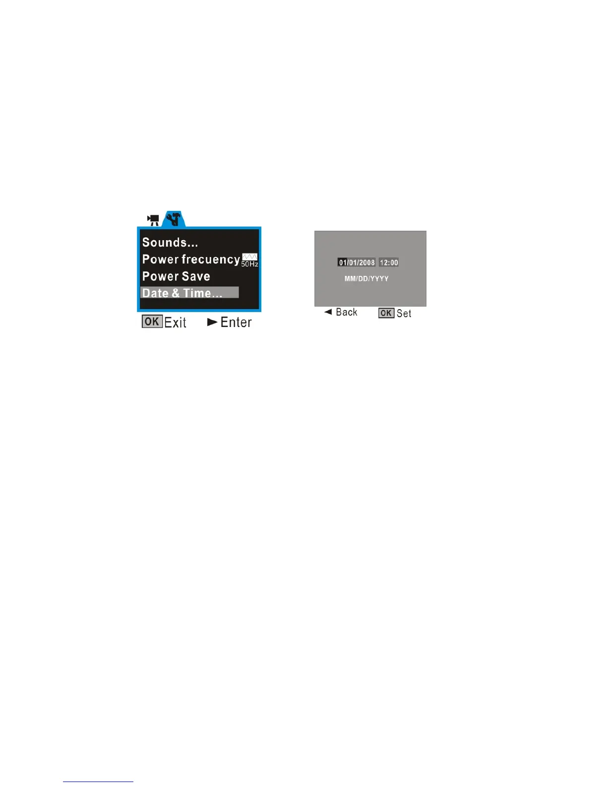 To leave the date and time unaltered, press Left key and then OK key to Exit setup mode.