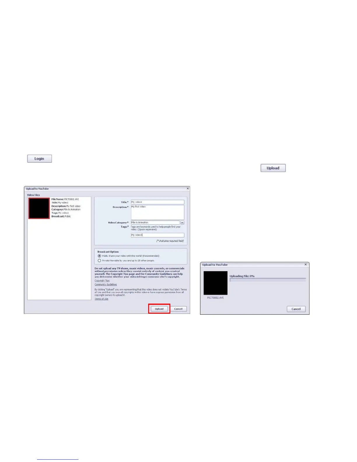 On“Login”screen, please enter your YouTube Username and Password (you can select the corresponding option