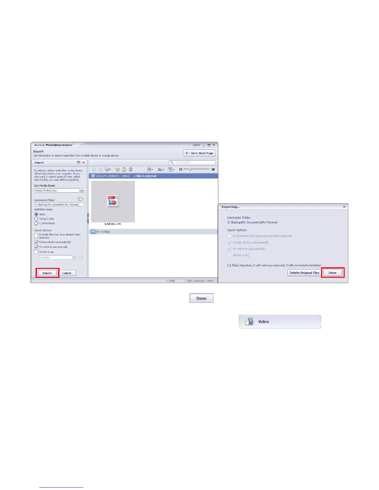 After importing the file has been completed, click on the Importing…”window and enter into