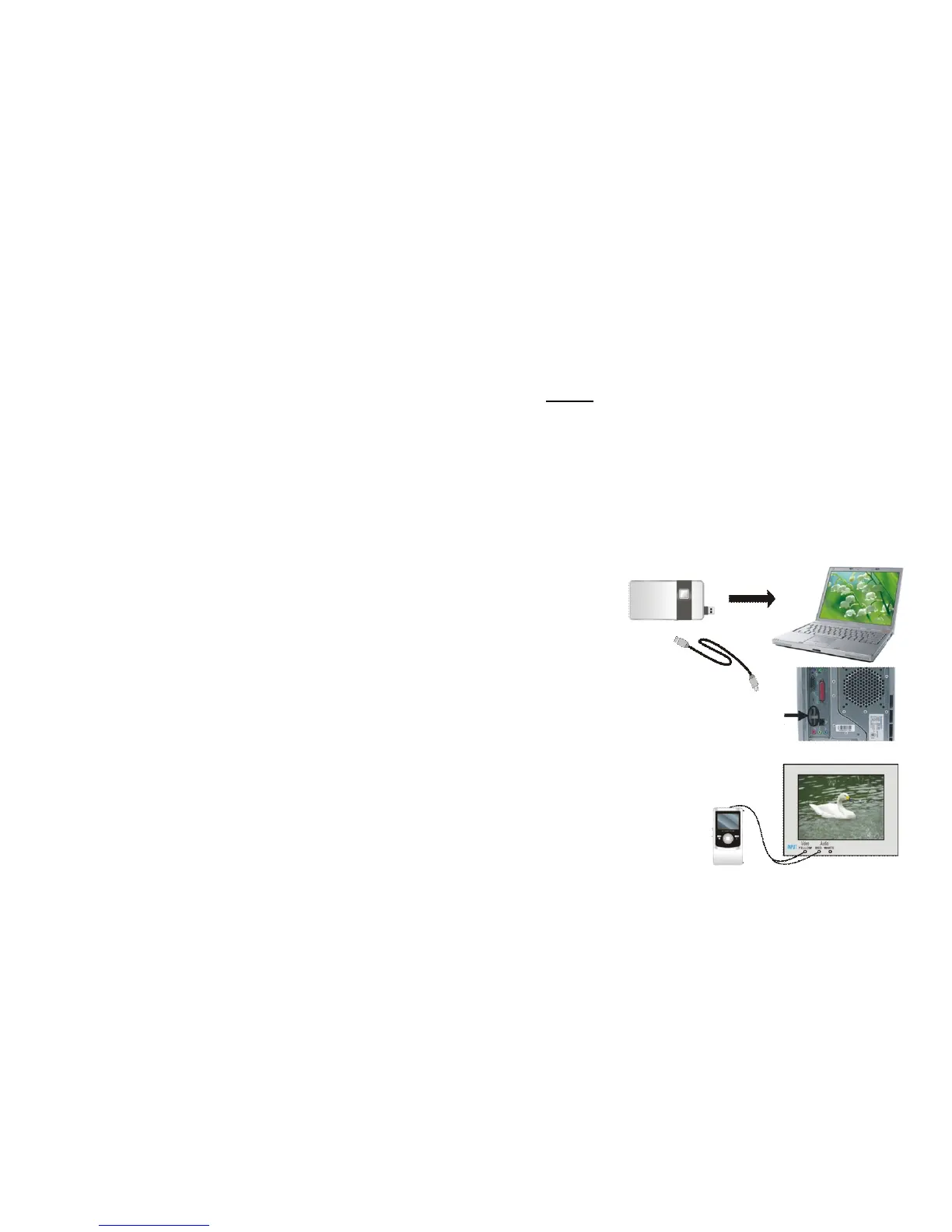 3. Insert camcorder USB connector into computer USB port, or use supplied USB extension cable to make