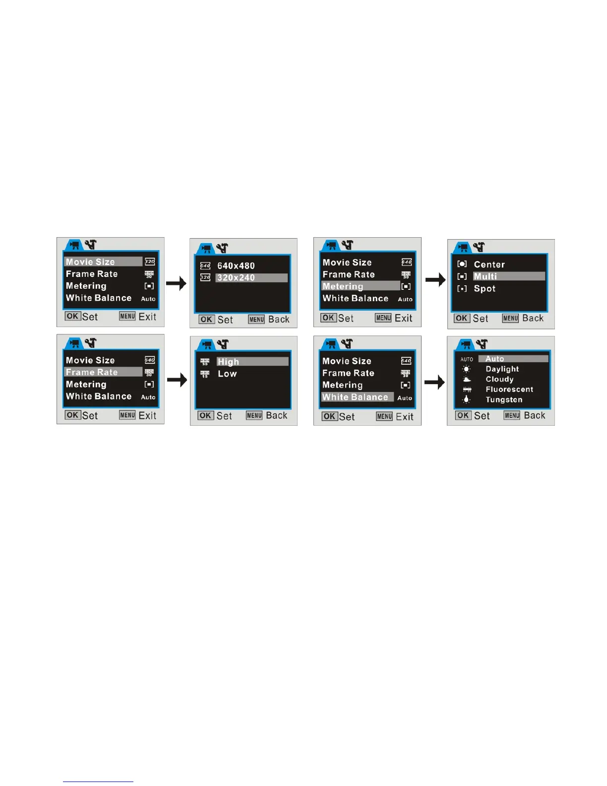Press Up / Down button to select desired setting then press OK button to confirm your