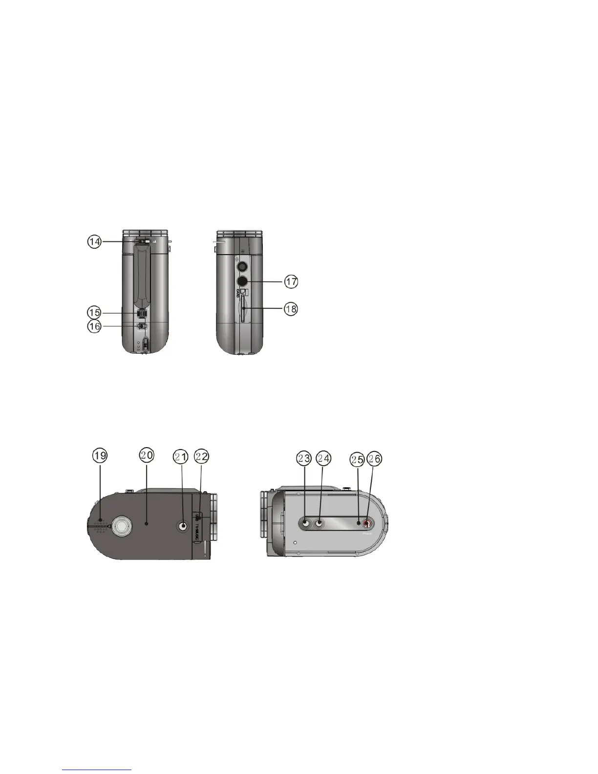 14. Macro / Normal lens dial 15. Zoom IN / OUT selector 16. Shutter button