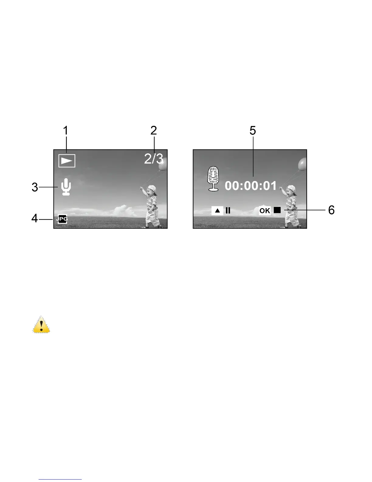 - The Photo and the Voice Memo will be displayed on the recorder LCD screen and