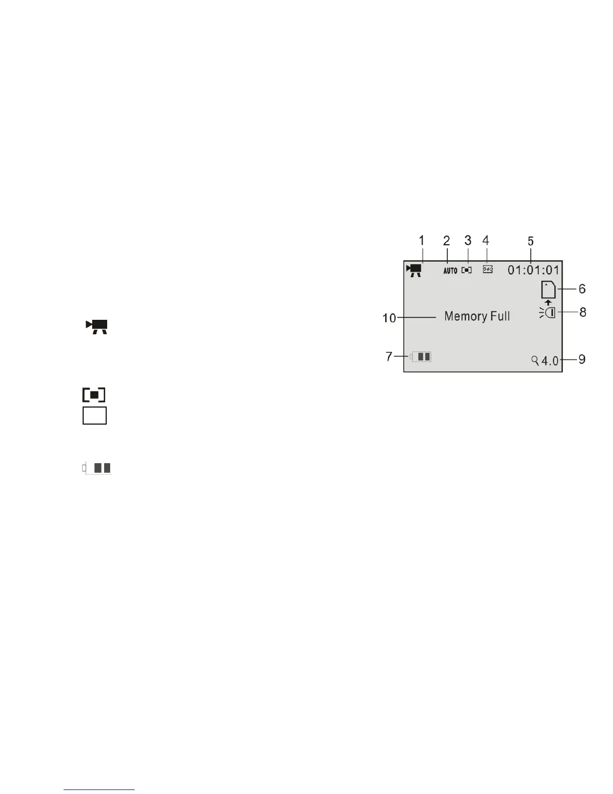 10 Memory Full: message indicates that the SD card memory is full and no more