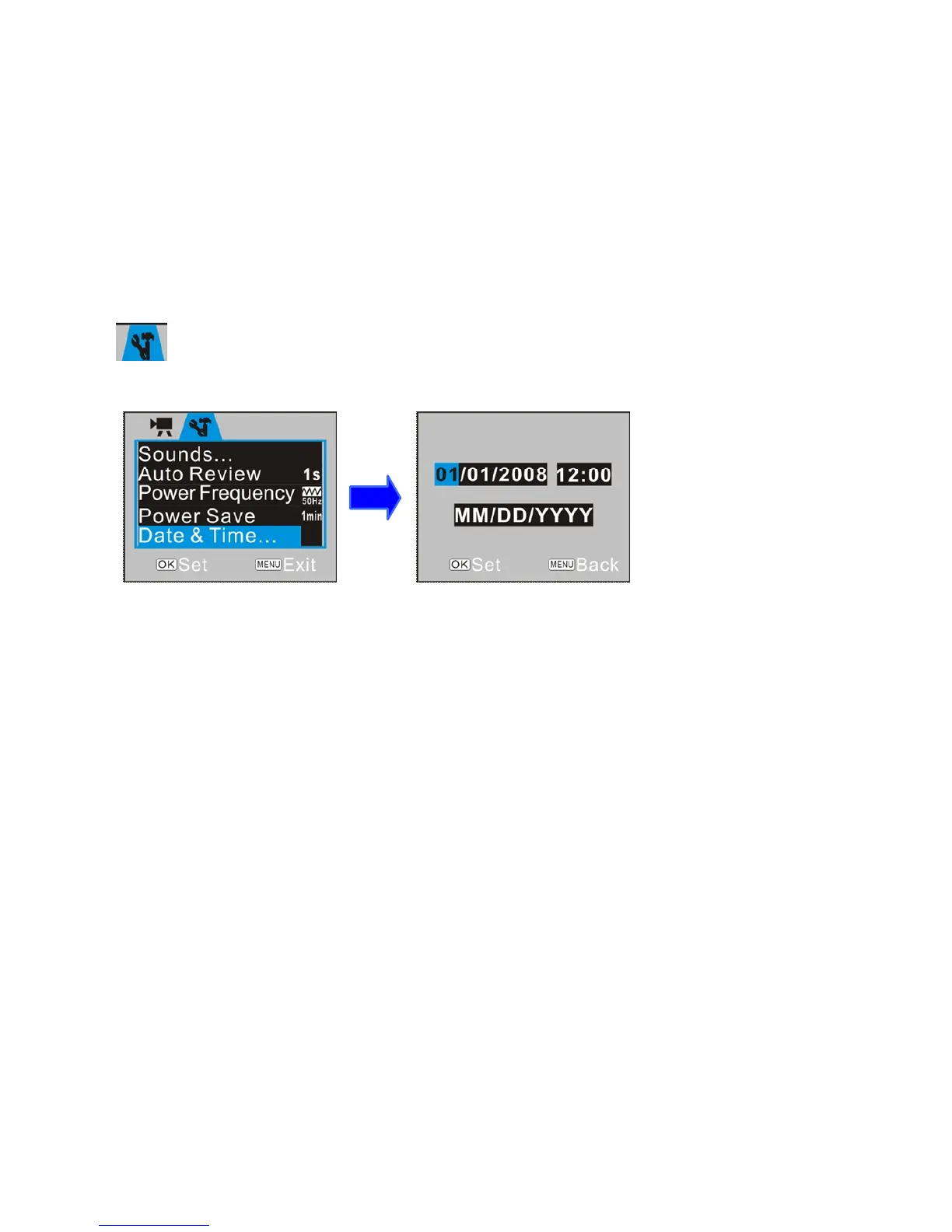 Menu . Press UP / DOWN Button to select āDate & Timeā option, and press OK key