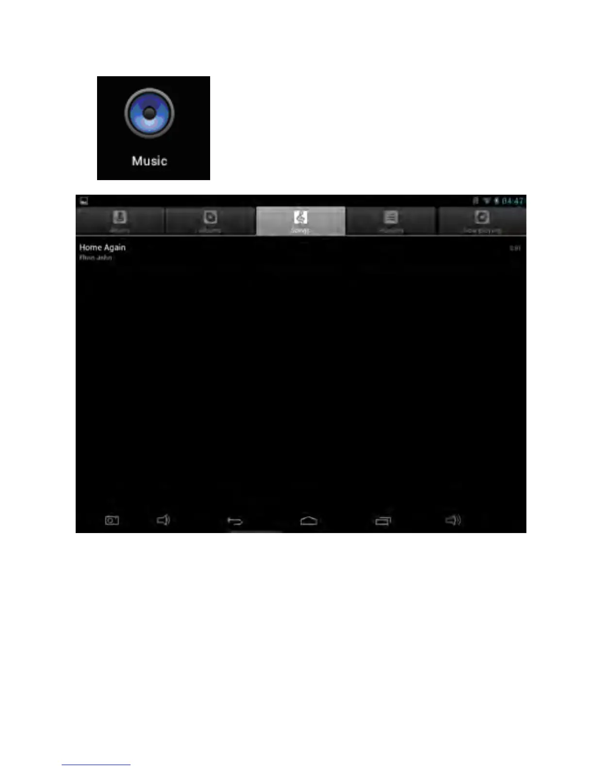 Menu options of Artists , Albums, Songs, Playlists an d Now playi ng are displayed