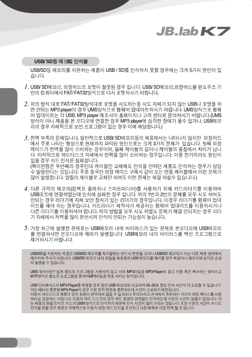 JB.lab K7 - 메모리(Usb;Sd)가 인식되지 않을시