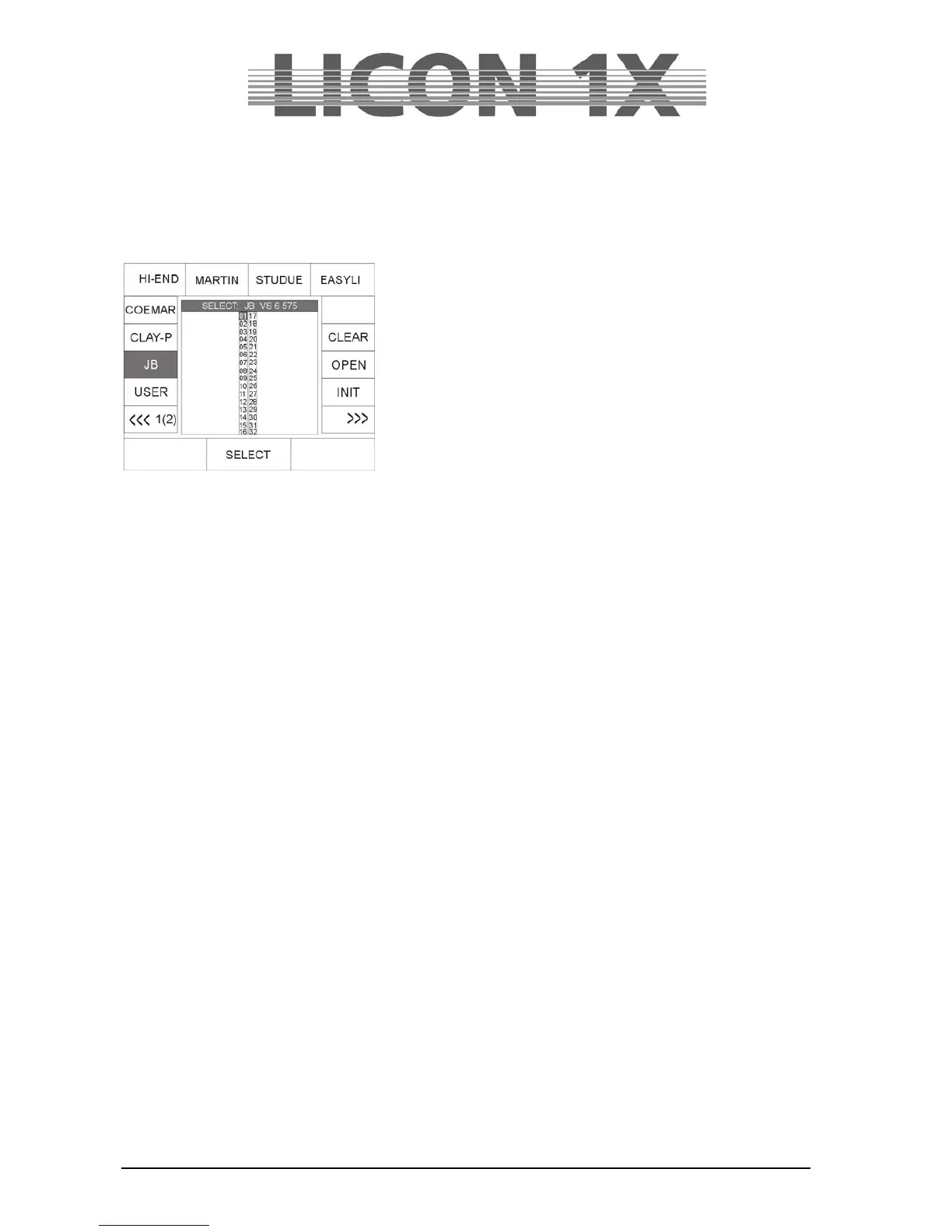 If you wish to delete the entire fixture list, enter CONFIG/SELECT menu and press the softkey CLEAR.