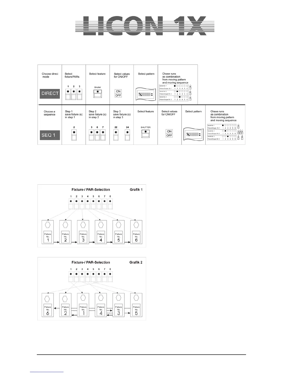 in the SEQ1 – SEQ8 mode, a step consists of one fixtue/Par moving light or a group of
