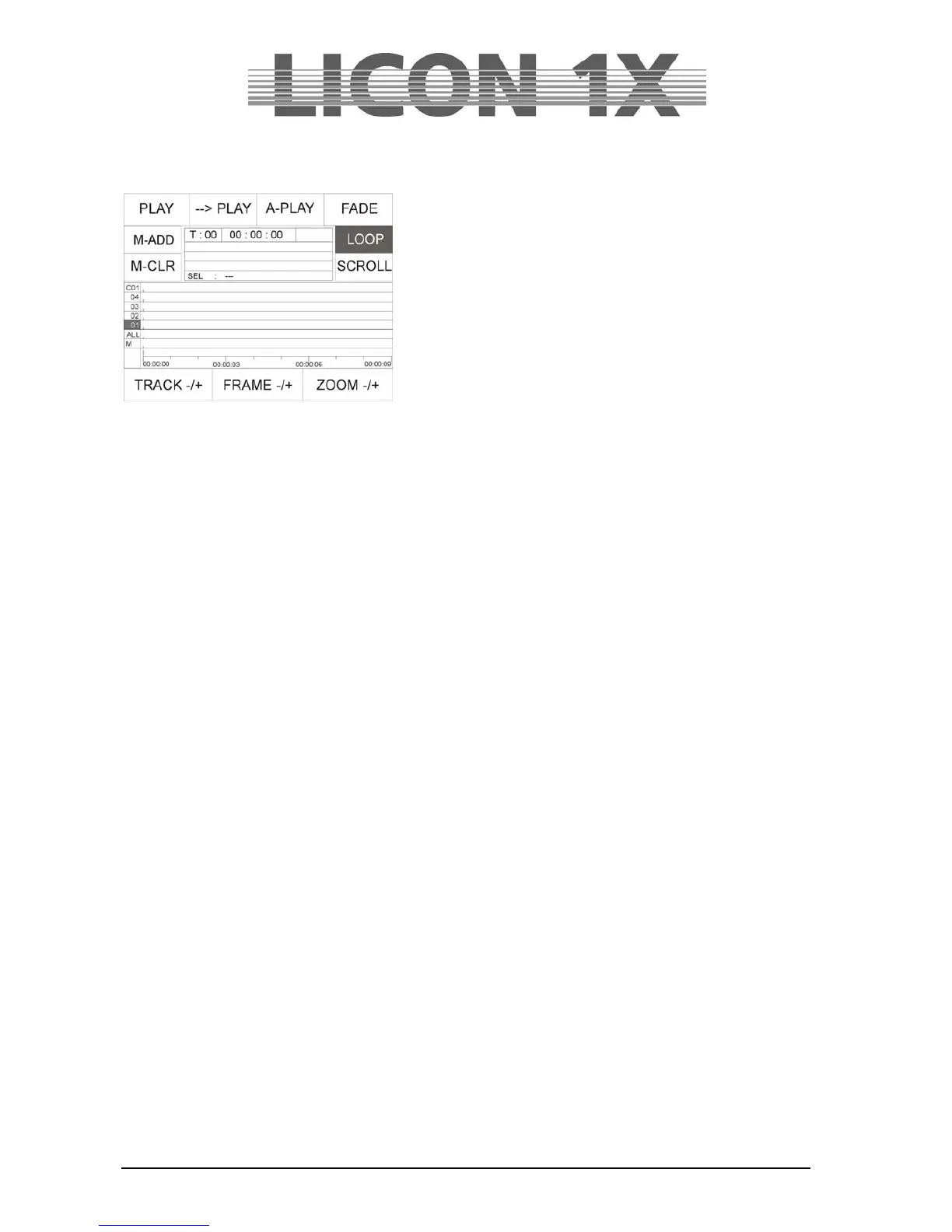 FRAME -/+: shifts the timeline forward or backward