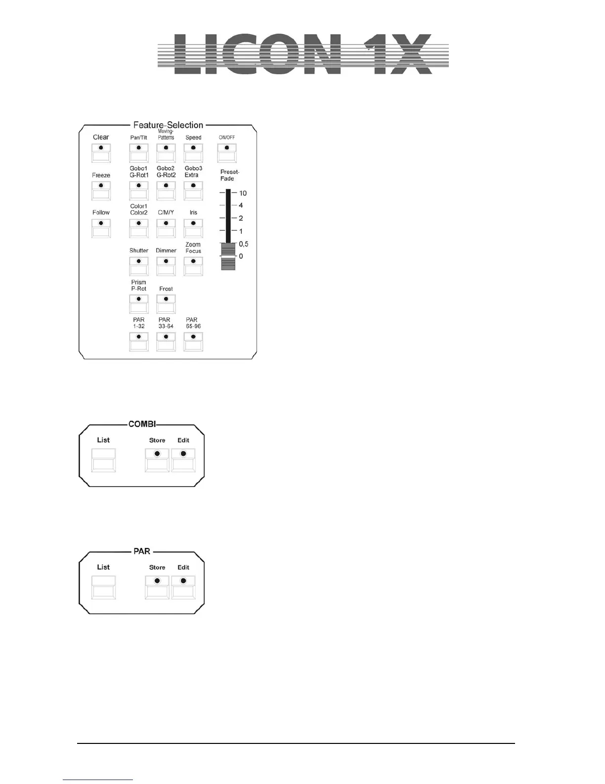 for PAR channels are stored by means of the keys of the Combi section.