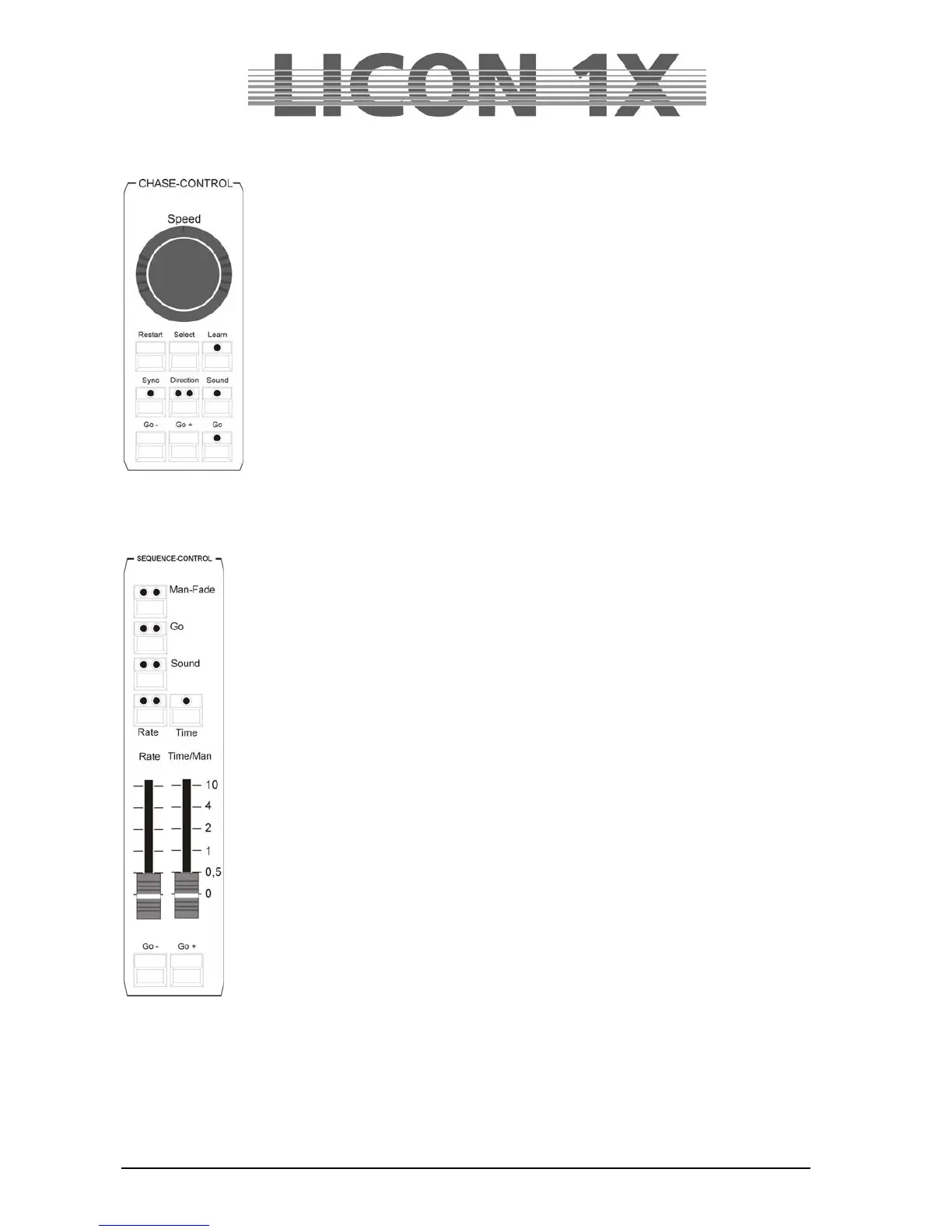 Allows manual fading of sequence steps. The time, during which the fader is raised from 0 to 10,