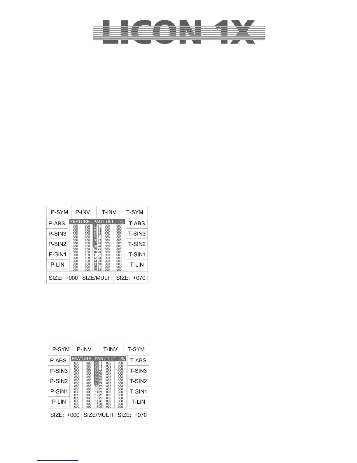 Funktion (Fixture Selection Pan/Tilt) und die vorprogrammierten Bewegungsmuster (Fixture-Selection
