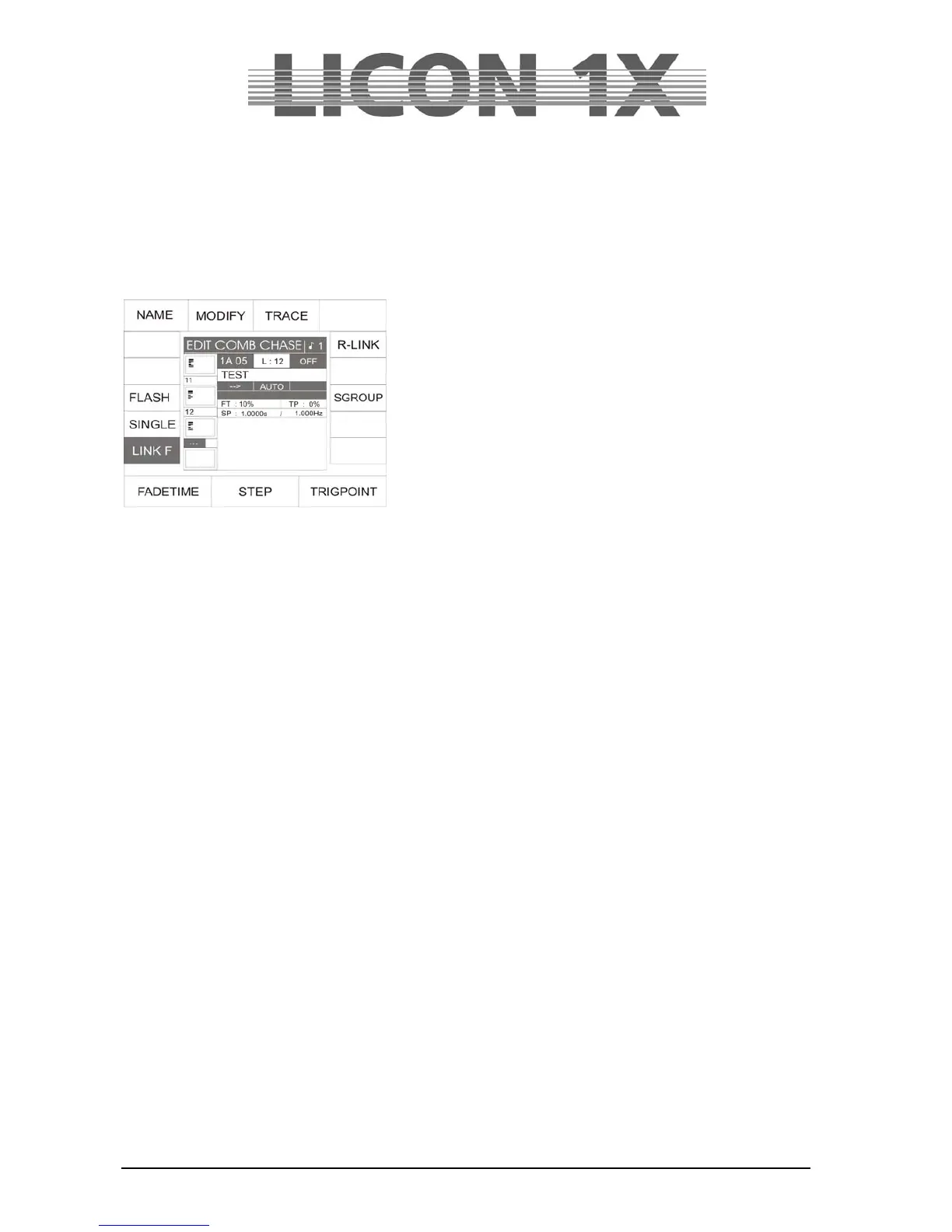 Mit der Funktionstaste LINK F kann gewählt werden, ob die Fadezeit in absoluten Zahlen, also Sekunden