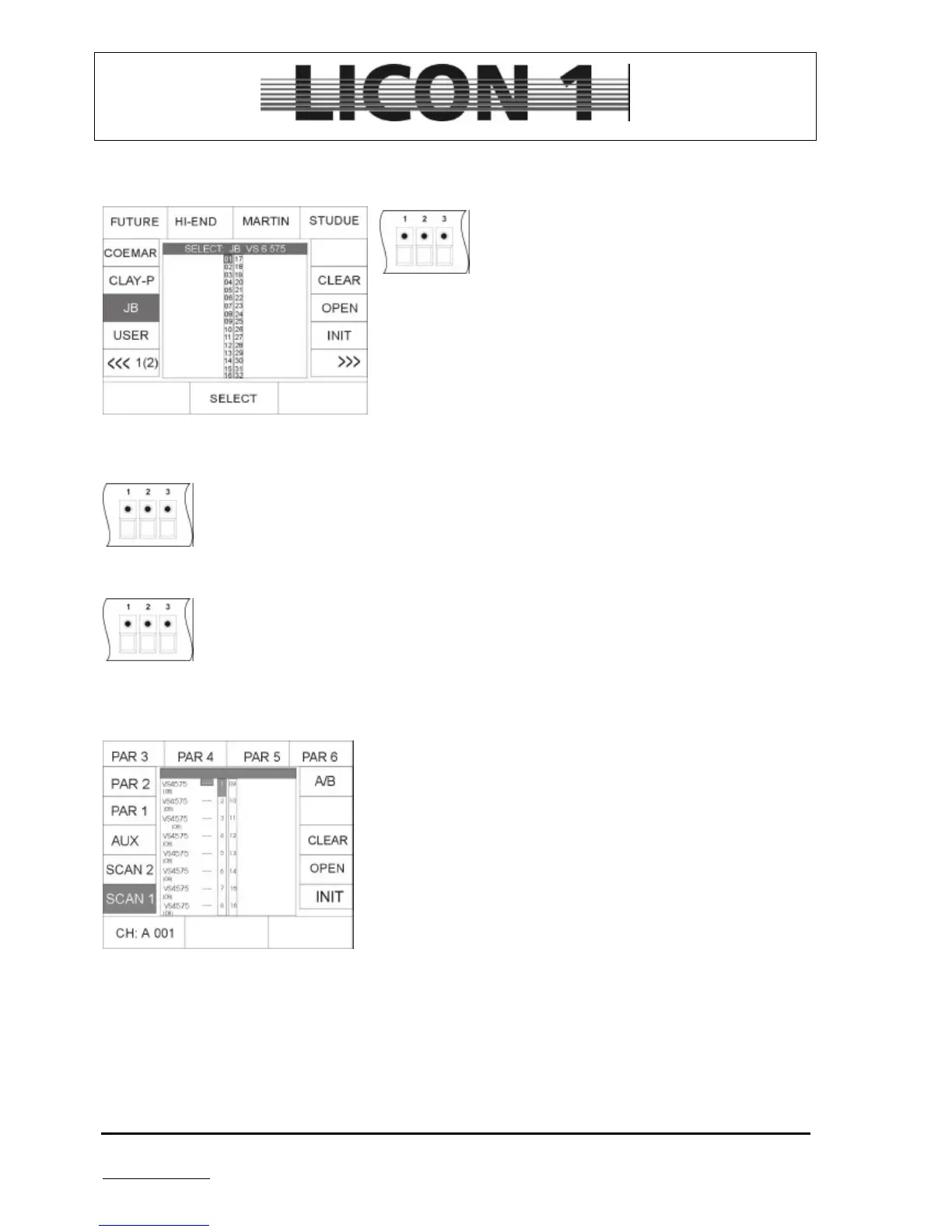 Fixture/Par selection block. Confirm process by pressing softkey OPEN.