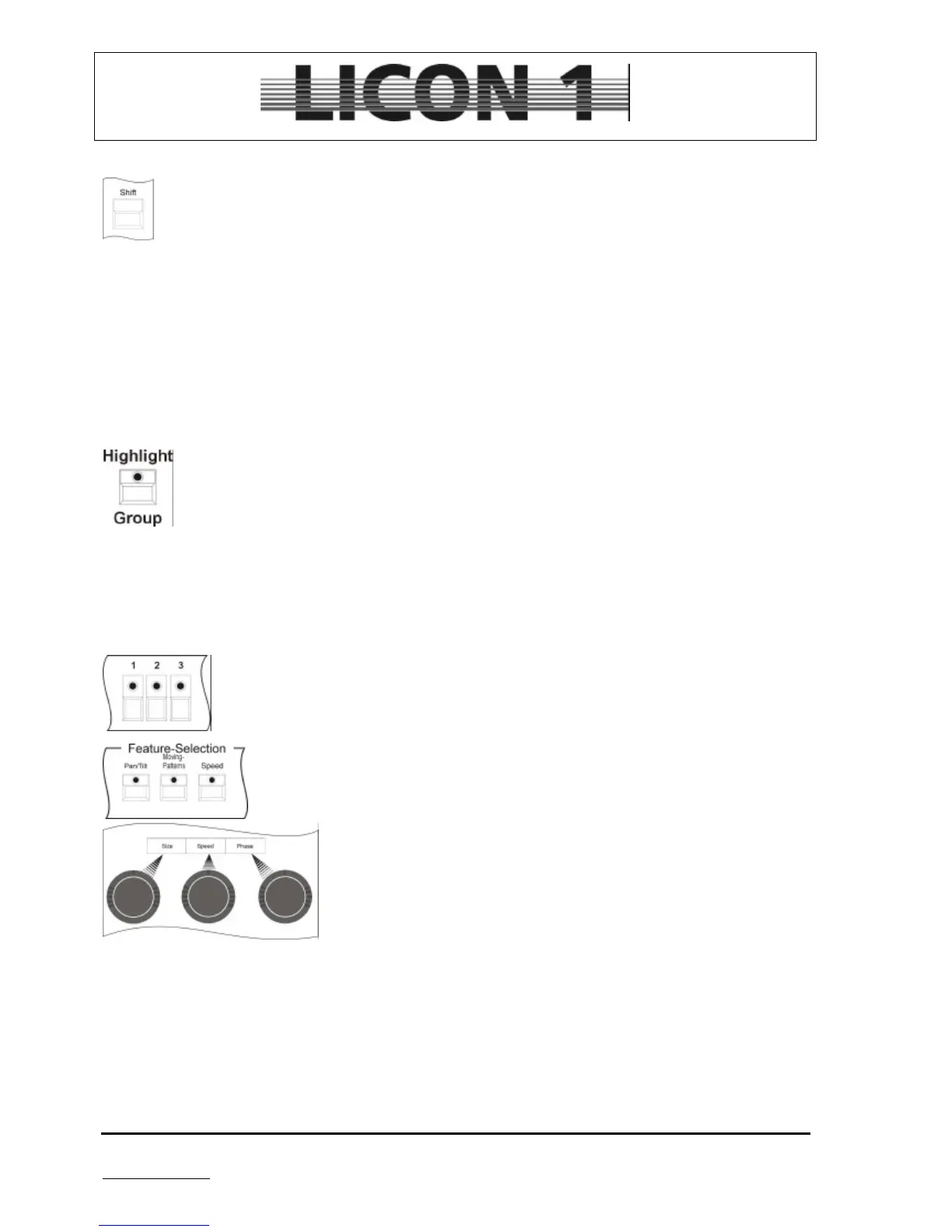 The Highlight/Group key has two functions. It helps locating fixtures and it is used to activate fixture groups