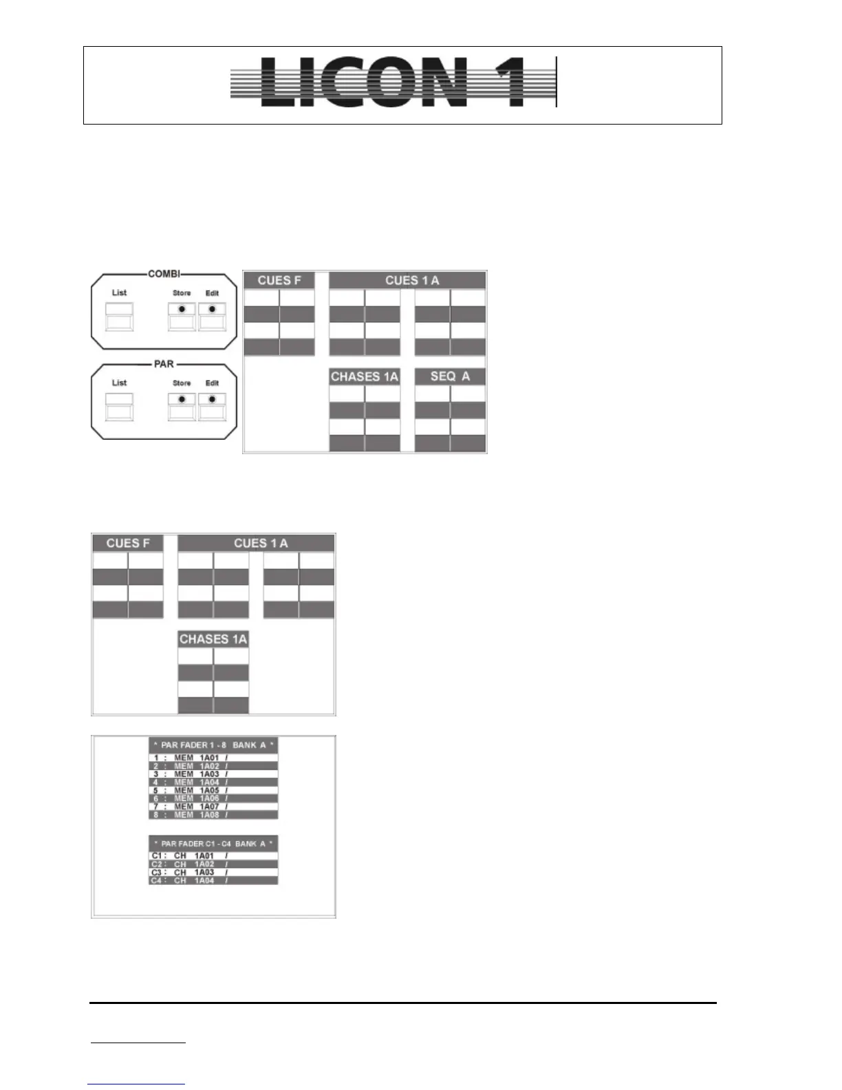The list of the cues/chases and sequences can be displayed. The list is recalled by pressing the list key in