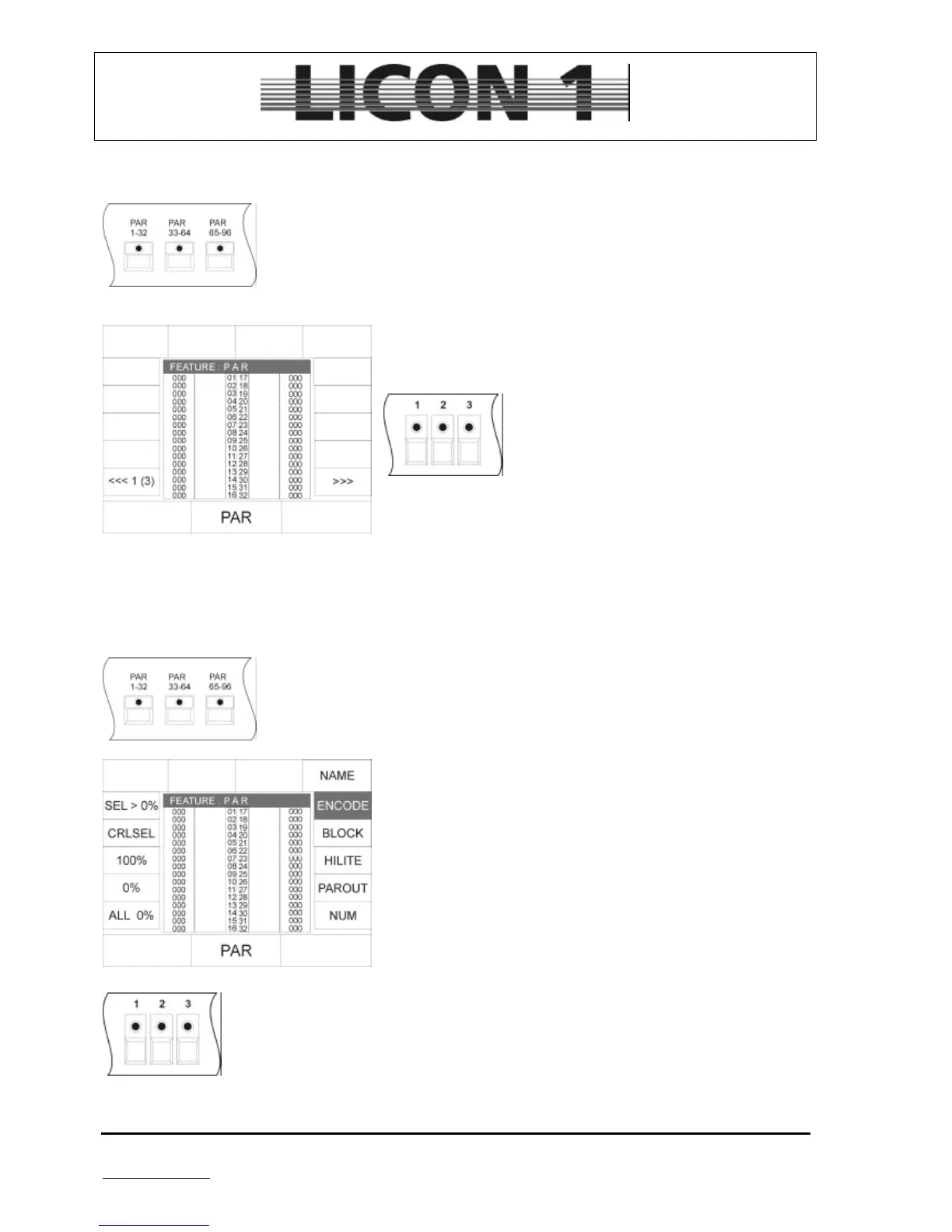 After pressing one of the PAR keys twice the display will show the following configuration: