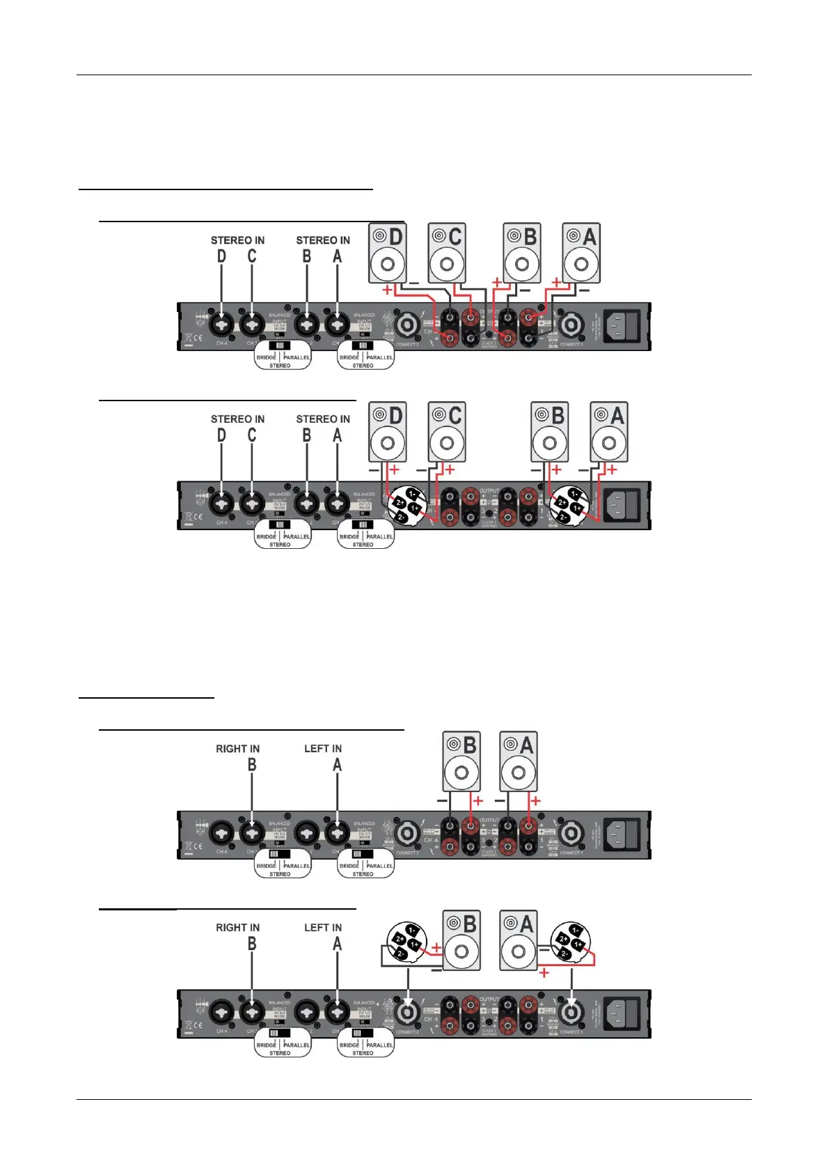 Beide Verstärker können auf 3 Arten separat konfiguriert werden, um verschiedene Konfigurationen zu