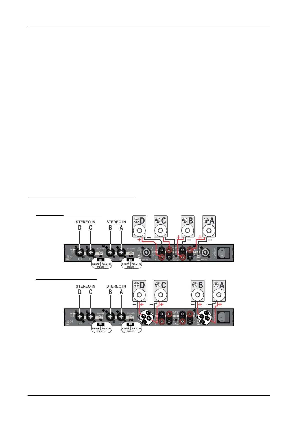 to drive the combined “bridged” output. Only speakers with impedance >8ohm are allowed.