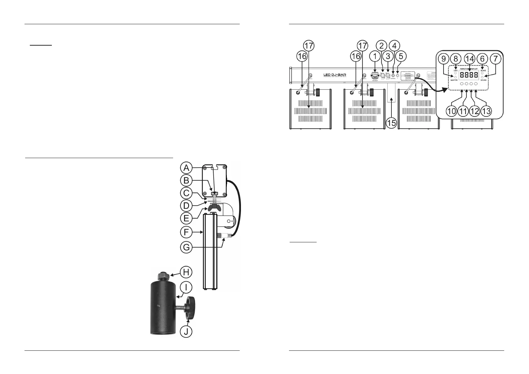 8. DMX LED: is lit when the unit receives a DMX-signal