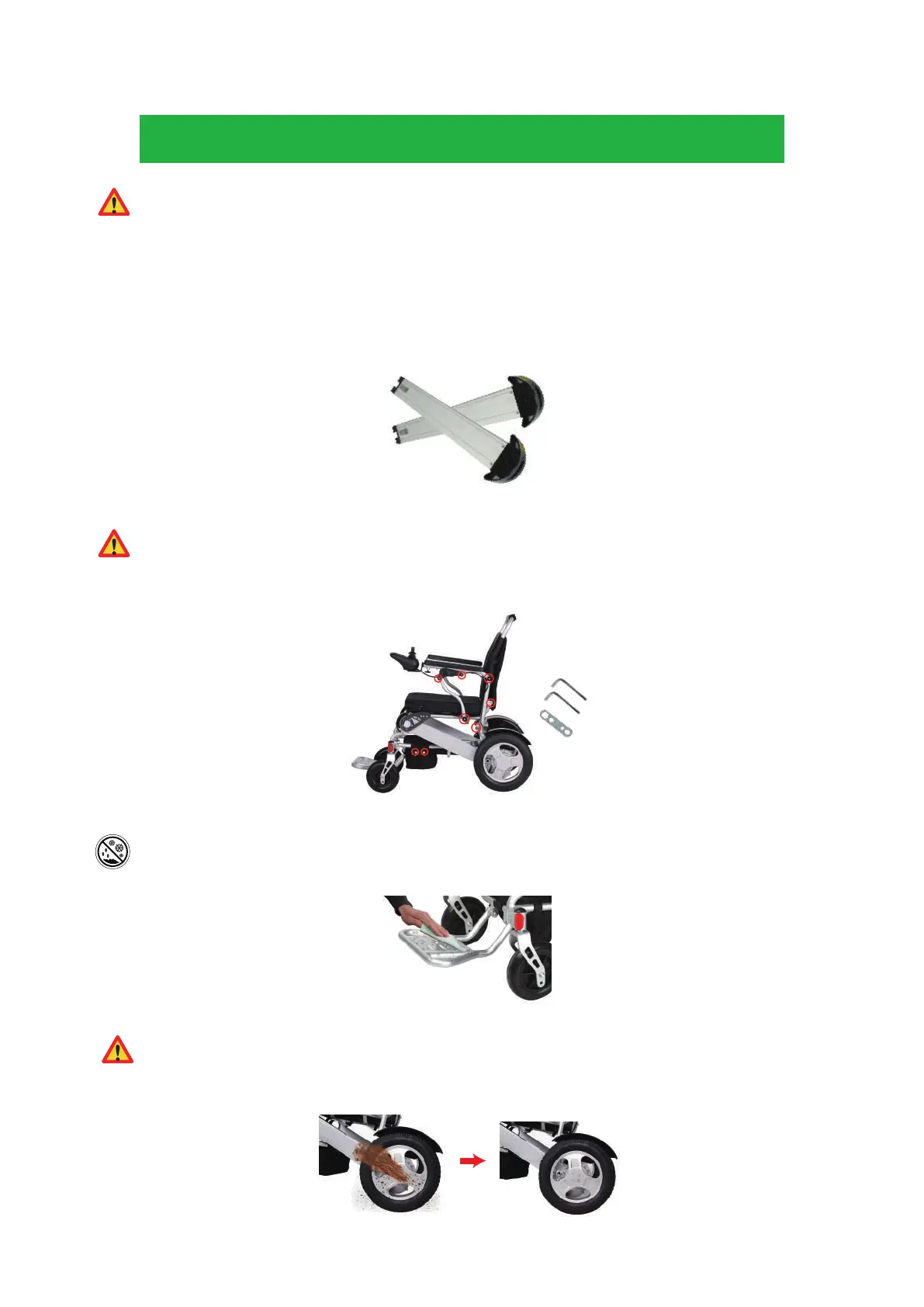 screw loosening of the Power Wheelchair to ensure the connection and operation be-