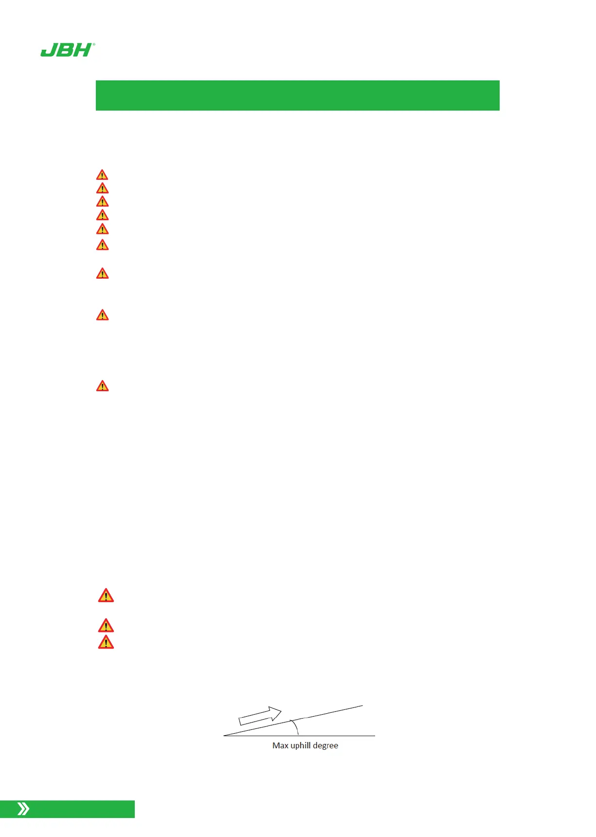 Not to drive backwards when going up and down a hill. Max grad ability